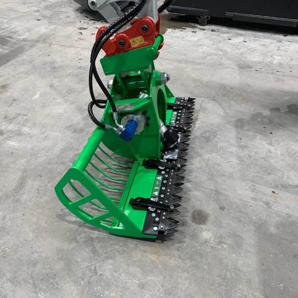 Мы также поставляем различные виды навесного оборудования, включая наклонный ковш, косильную корзину и ковш для сыпучих материалов.