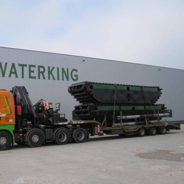Машина может оснащаться боковыми понтонами, а также промежуточными понтонами (между гусеницами). Это обеспечивает дополнительную устойчивость и делает работу на воде ещё более эффективной.
