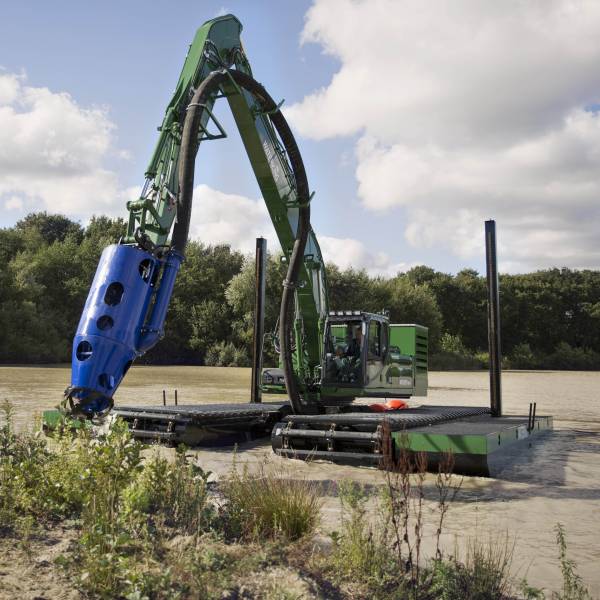 Идеально подходит для крупных работ: копания, дноуглубления, мульчирования и косильных работ. Машина также может быть дополнительно оснащена дноуглубительным насосом и powerpack’ом, благодаря чему может использоваться как полноценный земснаряд.