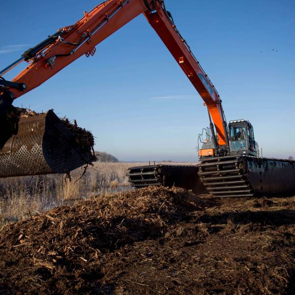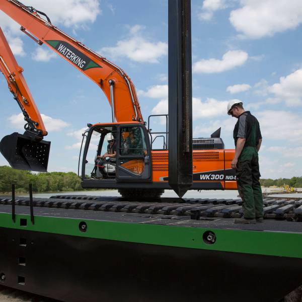 WK 300, WK 350 и WK 400 — это самые тяжёлые и мощные амфибийные экскаваторы в нашем парке. Благодаря мощным ходовым моторам они отличаются высокой универсальностью. Машины спроектированы для работы в самых суровых и сложных условиях. Идеально подходят для крупных проектов, таких как копка, дноуглубительные работы, мульчирование и кошение.