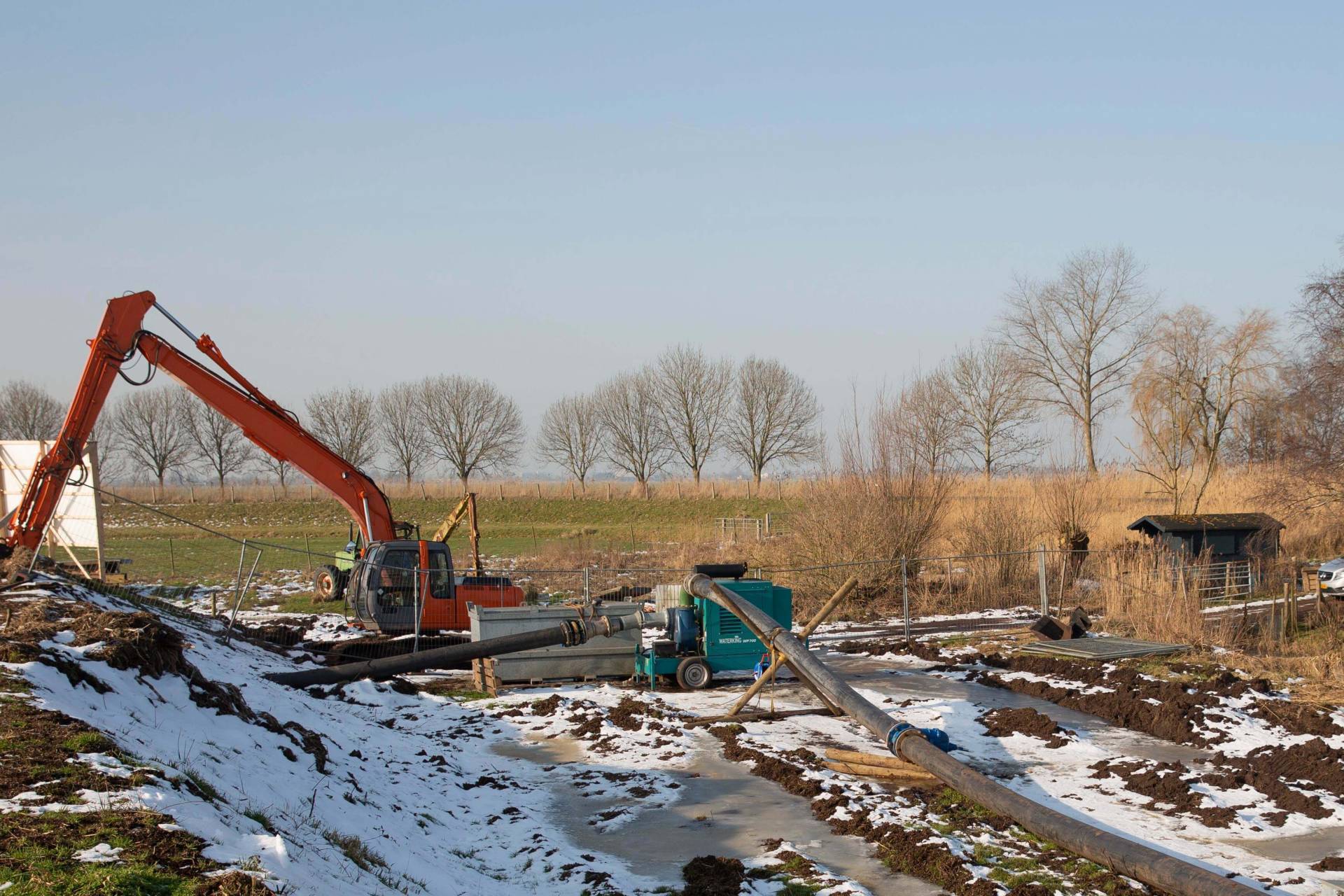 Водяной насос используется, в том числе, для осушения или наполнения водоёмов, прудов, котлованов и т. п.